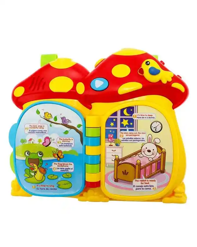 ESPAÑOL E INGLÉS PROYECCIÓN DUAL HD: busque lindas luces de animales que muestren proyecciones en el techo y la pared. Se reproducen dos proyecciones Full HD a la vez. LIBRO DE HISTORIAS CON MÚSICA TRANQUILA: El libro cuenta muchas historias interesantes con animales, colores, formas, sonidos y canciones de cuna. La música relajante para dormir a la hora de acostarse reconforta al bebé manteniendo una rutina constante a la hora de acostarse. BENEFICIOS PARA EL DESARROLLO: La curiosidad sensorial académica y las habilidades motoras finas ayudan a desarrollar las habilidades del lenguaje temprano y los conceptos de lectura. El libro de aprendizaje de proyección a doble cara de Mushroom es compatible con inglés y español. 100% SEGURO PARA EL BEBÉ: Hecho de plástico ABS no tóxico y seguro sin BPA. Ha sido completamente probado según los estándares estadounidenses y europeos y no tiene ningún efecto dañino en el bebé. DISEÑO DE CORREA: Puede colgar este libro en la cuna o cuna del bebé o llevarlo a donde quiera que vaya.
