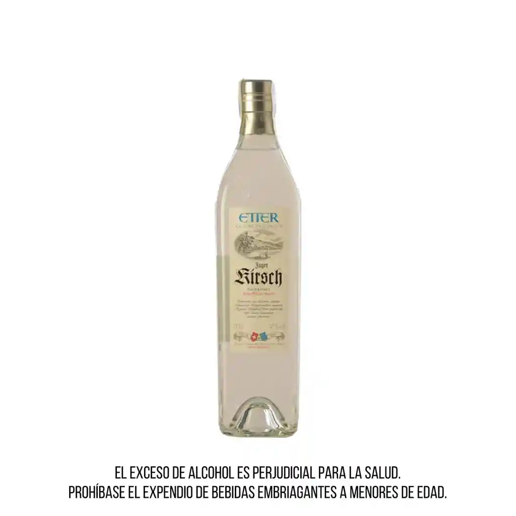 Aguardiente de cerezas suizas, En presentación de 700ml, con un volumen de alcohol del 41%.