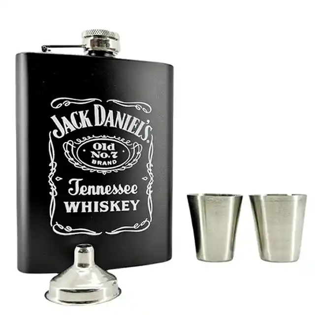 Ideal para llevar tu whisky preferido a cualquier lugar y con las copas que se incluyen podrás brindar con tus amigos en cualquier ocasión y lugar. El kit tiene también incluye un mini embudo para llenar la botella y las copas, posee un diseño muy elegante, es una gran opción de regalo para hombres.