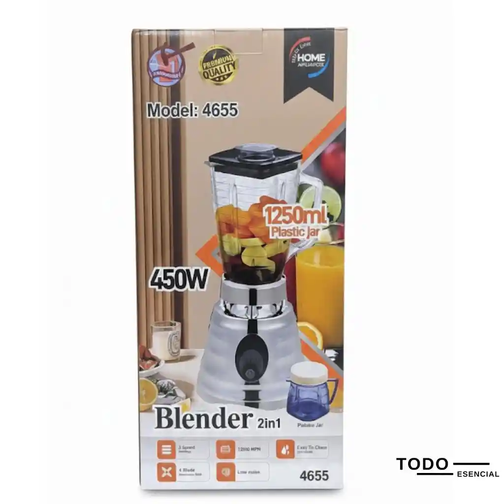 🔋 Prepara tus jugos, batidos y salsas favoritas con la eficiencia que necesitas. Este sistema 2 en 1 está diseñado para ofrecer un rendimiento superior con un diseño moderno que resalta en cualquier cocina. 🔹 Características Destacadas: ✅ Potencia de 450W: Motor eficiente de alta velocidad (12800 RPM) para triturar frutas y vegetales con facilidad. ✅ Capacidad de 1250ml: Jarra de plástico resistente con gran capacidad, ideal para preparaciones familiares. ✅ Sistema 2 en 1: Incluye una unidad principal versátil para diferentes tipos de mezclado y procesamiento. ✅ Cuchillas de Acero Inoxidable: 4 hojas de alto rendimiento diseñadas para un corte preciso y duradero. ✅ 3 Velocidades + Pulso: Control total sobre la textura de tus mezclas con diferentes niveles de intensidad. ✅ Diseño Silencioso: Tecnología de bajo ruido para una experiencia de uso más agradable en el hogar. ✅ Fácil de Limpiar: Componentes desmontables que facilitan el lavado rápido después de cada uso. ✅ Base Estable: Diseño robusto con soportes antideslizantes para mayor seguridad durante el funcionamiento. 🔄 Disfruta de una vida más saludable y práctica con la Licuadora Modelo 4655, la aliada perfecta para tus recetas diarias 🎶🔥