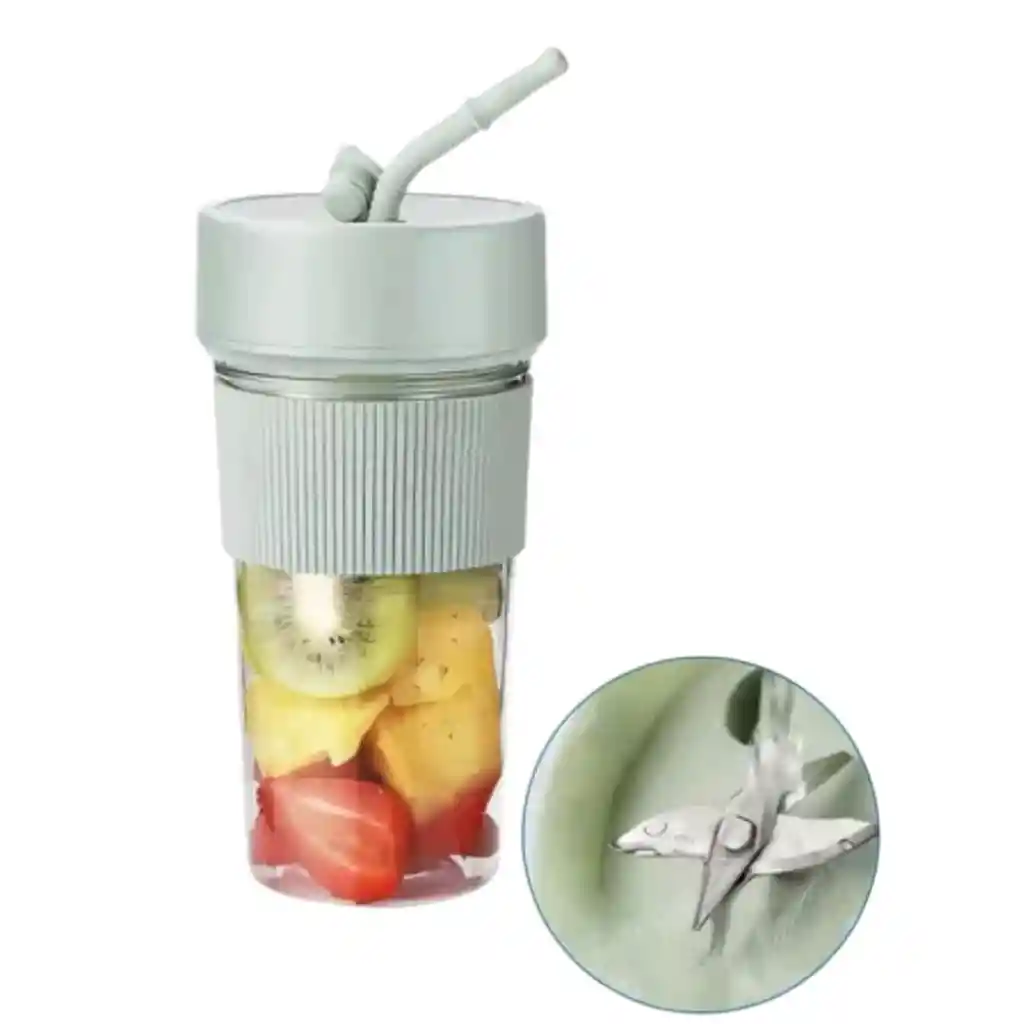 Esta licuadora personal es una excelente opción porque te permite disfrutar de jugos naturales y batidos frescos en cualquier momento y lugar. Su diseño compacto y portátil la hace ideal para llevar al gimnasio, de viaje o usarla en casa sin ocupar mucho espacio. Al ser recargable por USB, es muy conveniente, ya que no necesitas pilas ni estar cerca de un enchufe. CARACTERISTICAS * Diseño compacto y portátil. * Recargable por USB para mayor comodidad. * Cuchillas de acero inoxidable para triturar ingredientes fácilmente. * Botella de plástico resistente y libre de BPA. * Fácil de usar con un solo botón. * Potente motor para una mezcla rápida y eficiente. * Capacidad de la botella: 380 ml. * Funciona con una variedad de ingredientes como frutas, verduras. * Las piezas son desmontables y aptas para lavavajillas. MEDIDAS Alto: 17 cm Diametro: 8,7 cm