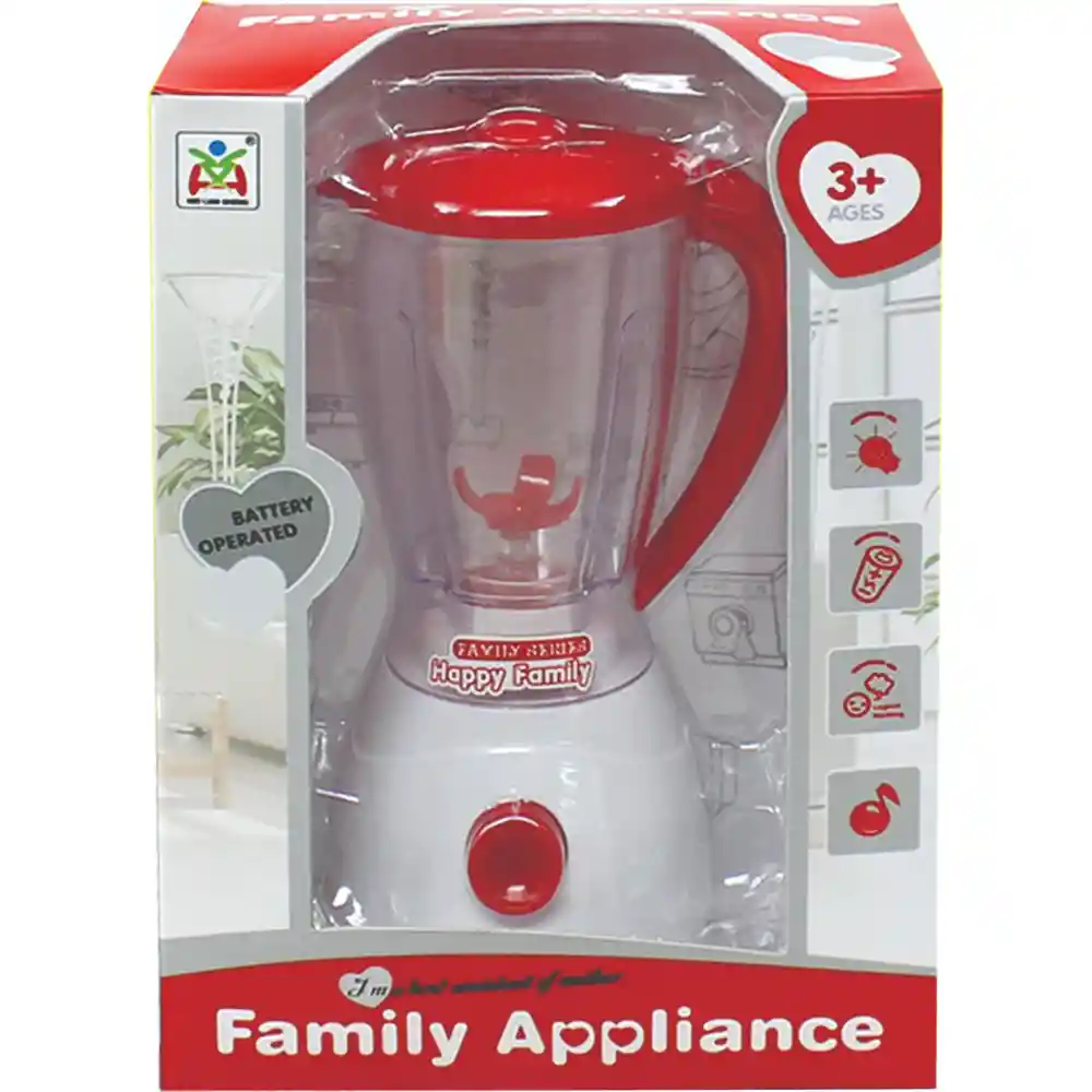 NOMBRE: LICUADORA HAPPY PILAS CAJA DESCRIPCION: Fabulosa Licuadora ideal para que las pequeñas pasen horas emocionantes y entretenidas, recreando fantásticas historias culinarias y preparando deliciosas recetas con toques de sabor, amor y dulzura. Este Juguete invita a las niñas a involucrarse en actividades lúdicas, que son altamente beneficiosos para ellas, estimulando su imaginación y creatividad mientras juegan con elementos de cocina. Requiere 2 pilas AA no incluidas. - Dimensiones del producto empacado: 21X15X9 centímetros - Disponibilidad permanente - Despachos a nivel nacional - Tiempo de entrega aproximado 3 a 4 días hábiles contados a partir del día hábil siguiente al pedido. La plataforma te dará un tiempo de entrega mas preciso al momento de concretar la compra. Estamos atentos a resolver cualquier inquietud que tengas después de revisar las fotos y descripción del producto. JUGUETELANDIA más de 30 años ofreciendo diversión.