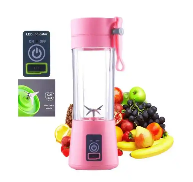 LICUADORA PORTÁTIL ROSADA PARA JUGOS Y BATIDOS PERSONALES 380ML