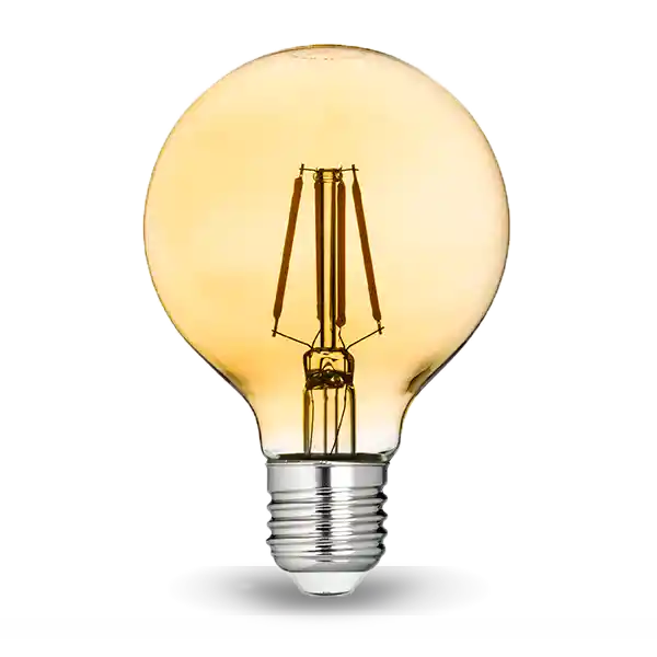 Bombillo Burbuja Pequeño Ámbar Diámetro 80 mm de Filamentos Led, Casquillo E27 4W, Luz Cálida Para Iluminar Tus Espacios. Altura: 120 mm. Ancho: 80 mm