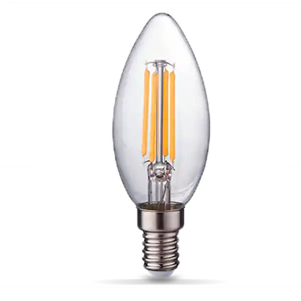 Bombillo Vela Transparente de Filamentos Led, Casquillo E14 4W, Luz Fría Para Iluminar Tus Ambientes. Altura: 100 mm. Ancho: 35 mm