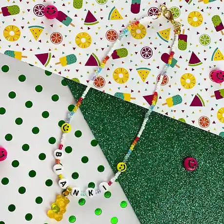 Collar de mostacillas perfecto para combinar con cualquier outfit para llenarlo de colores y estilo. Tamaño: 39 cm de diametro con extensor. *Personalízalo con tú nombre!!