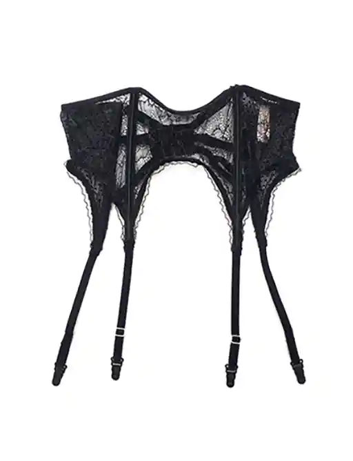 De Cuatro Tiras de Terciopelo Con Gancho Para Sujeta Medias. De Encaje y Mesh de Puntos Con Gafete y Tiras Ajustables En La Parte Trasera. Con Varillas Cubiertas en Satín.