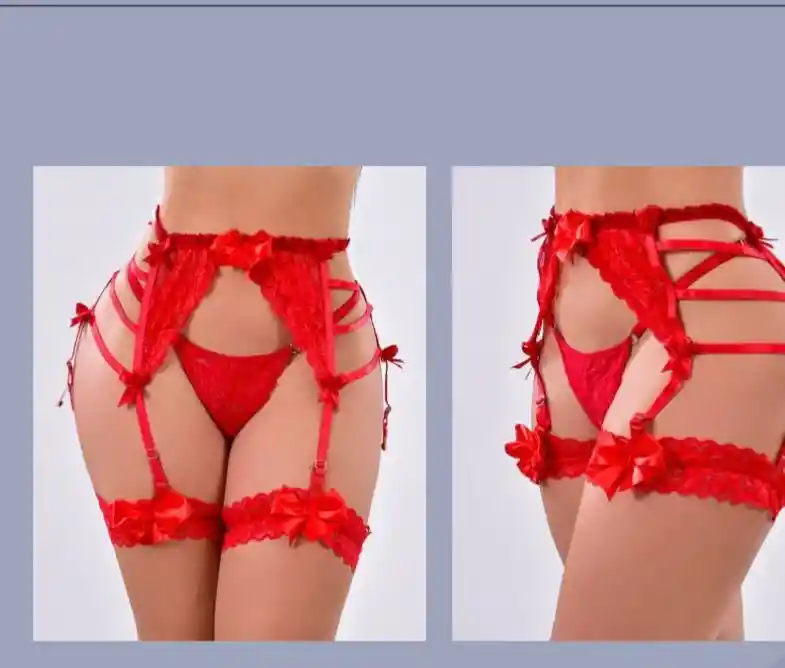 Diverxox (Modelo LIG04): Tipo: Liguero con tanga incluido. Marca: Simone by Diverxox. Diseño: Estilo sensual con tiras ajustables y detalles decorativos. Color: Rojo. Material: Tela elástica suave y cómoda al contacto con la piel. • Incluye: • Liguero • Tanga • Tirantes para sujetar medias Ajuste: Correas ajustables para mejor adaptación al cuerpo. •Uso: Ideal para ocasiones especiales, lencería sensual o uso íntimo. •Presentación: Empaque discreto, perfecto para almacenamiento o regalo.