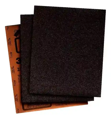 Lija al Agua 180 marca 3M. Fabricadas con mineral de óxido de aluminio, son duraderas y flexibles, facilitando el uso durante el lijado al agua en la reparación automotriz. Ideal para madera, metal, yeso, masillas, pinturas, primer y masillas de relleno. Material innovador tecnológico en su corte, manteniendo el acabado que necesitas incluso en seco. 28 x 23 cm.