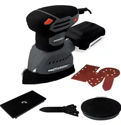 Lijadora Multifuncional 4 en 1. Delta: 140 x 140 x 100mm. Espada: 30 x 90mm. Orbital: 90 x 187mm. Roto Orbital: 125mm. Potencia 220W. Velocidad 1200 RPM. Oscilación: 1,8mm. Peso 1,75 kg