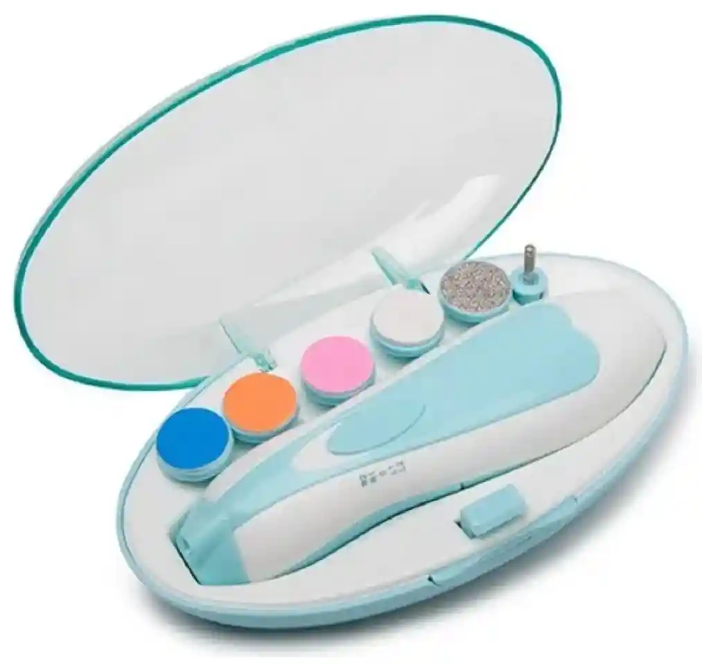 Disponible en color azul y rosado . Funciones y detalles SEGURO: La manera más fácil y segura de cortarle las uñas de las manos y pies a tu bebé. En lugar de cortar de manera tradicional, nunca daña las cutículas o el lecho ungueal. Redondea fácilmente las uñas de tu bebé para evitar rasguñar su piel sensible. FÁCIL DE USAR: Un botón para controlar dos velocidades diferentes (alta/baja) y dos patrones de rotación (en sentido de las agujas del reloj/contra las agujas del reloj). Los cabezales de corte/lima son fáciles de instalar y reemplazar. DISEÑO PORTÁTIL: El estuche de almacenamiento liviano y compacto permite un fácil transporte. Puedes recortar las uñas de tu bebé en cualquier momento. Es súper conveniente para el hogar o para viajes, con 2 baterías AA (no incluidas). SILENCIOSO Y CON LUZ LED INTEGRADA: Tiene un motor súper silencioso para recortar sin ruido las uñas de tus bebés cuando están durmiendo. Equipado con una luz LED suave, te permite recortar las uñas de forma clara durante la noche, sin perturbar el dulce sueño de tu bebé. SEIS CABEZALES PARA BEBÉS Y ADULTOS: Los seis cabezales de corte incluyen: 3 cabezales de papel de lija para bebés y niños; 3 cabezales de corte para adultos. Podrían ser utilizados para toda la familia.