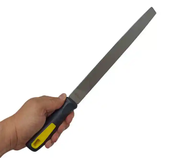 LIMA PLANA La lima es una herramienta manual utilizada para el desgaste y afinado de piezas de distintos materiales como el metal, el plástico o la madera. Está formada por una barra de acero al carbono templado que posee unas ranuras llamadas dientes y que en la parte posterior está equipada con una empuñadura o mango. CARACTERÍSTICAS • Fabricada en Aleación de Acero • Mango cómodo Bi-material • Estuche plástico • Marca UYUSTOOLS