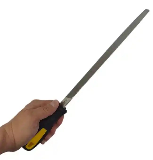 LIMA TRIANGULAR La lima es una herramienta manual utilizada para el desgaste y afinado de piezas de distintos materiales como el metal, el plástico o la madera. Está formada por una barra de acero al carbono templado que posee unas ranuras llamadas dientes y que en la parte posterior está equipada con una empuñadura o mango. CARACTERÍSTICAS • Fabricada en Aleación de Acero • Mango cómodo Bi-material • Estuche plástico • Marca UYUSTOOLS