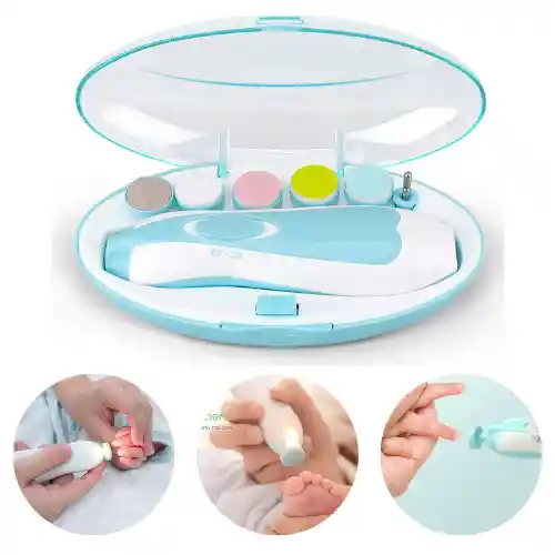 *** SOMOS RAVESTORE ONLINE *** Lima Para Bebes y Niños ¿Te preocupa que el bebé se rompa la cara, o las uñas del bebé se conviertan en carne, o el recortador tradicional lastimar la piel del bebé? Aquí la lima de uñas eléctrica del bebé es la forma de resolver el problema 1. Características principales: • 6 cabezas de molienda para recién nacidos, bebés y adultos. • Funcionamiento con un botón y potencia ajustable (2 velocidades y en sentido horario/anticerradura). • Luz frontal LED integrada, conveniente para usar en la oscuridad. • Silencioso, se puede utilizar para el bebé mientras duermes. 2. Modos de trabajo • R2----Rotación en sentido contrario a las agujas del reloj con alta velocidad • R1----Girar en sentido contrario a las agujas del reloj con baja velocidad. • L1----Girar en sentido horario con baja velocidad • L2---Girar en sentido horario con alta velocidad • El "0" significa modo apagado. 3. Pasos de funcionamiento: • Si la uña es demasiado larga, puede cortar a la longitud adecuada. • Pilas de 2 AA. • Elija el cabezal de molienda adecuado para diferentes edades y conéctese a la interfaz de la cabeza • Pulsa el botón para iniciar y elige la velocidad necesaria 4. Medidas del producto • Alto 13cm • Ancho 3cm 5. El producto contiene • Lima recargable 1 • Repuestos 6 limas • Manual 1 6. Notas: • El paquete no incluye pila. • Si no utilizas el recortador durante mucho tiempo, quítate las pilas. • Mantener alejado del alcance de los niños. • Hay 3 cabezas grandes para adultos, no usar para el bebé.