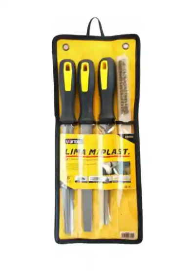 CARACTERÍSTICAS • Fabricadas en acero de aleación • Mango ergonómico bi-material • Incluye cepillo grata • Mago 11.5cm • Lima 20cm • Cepillo 10cm con mago de 24cm