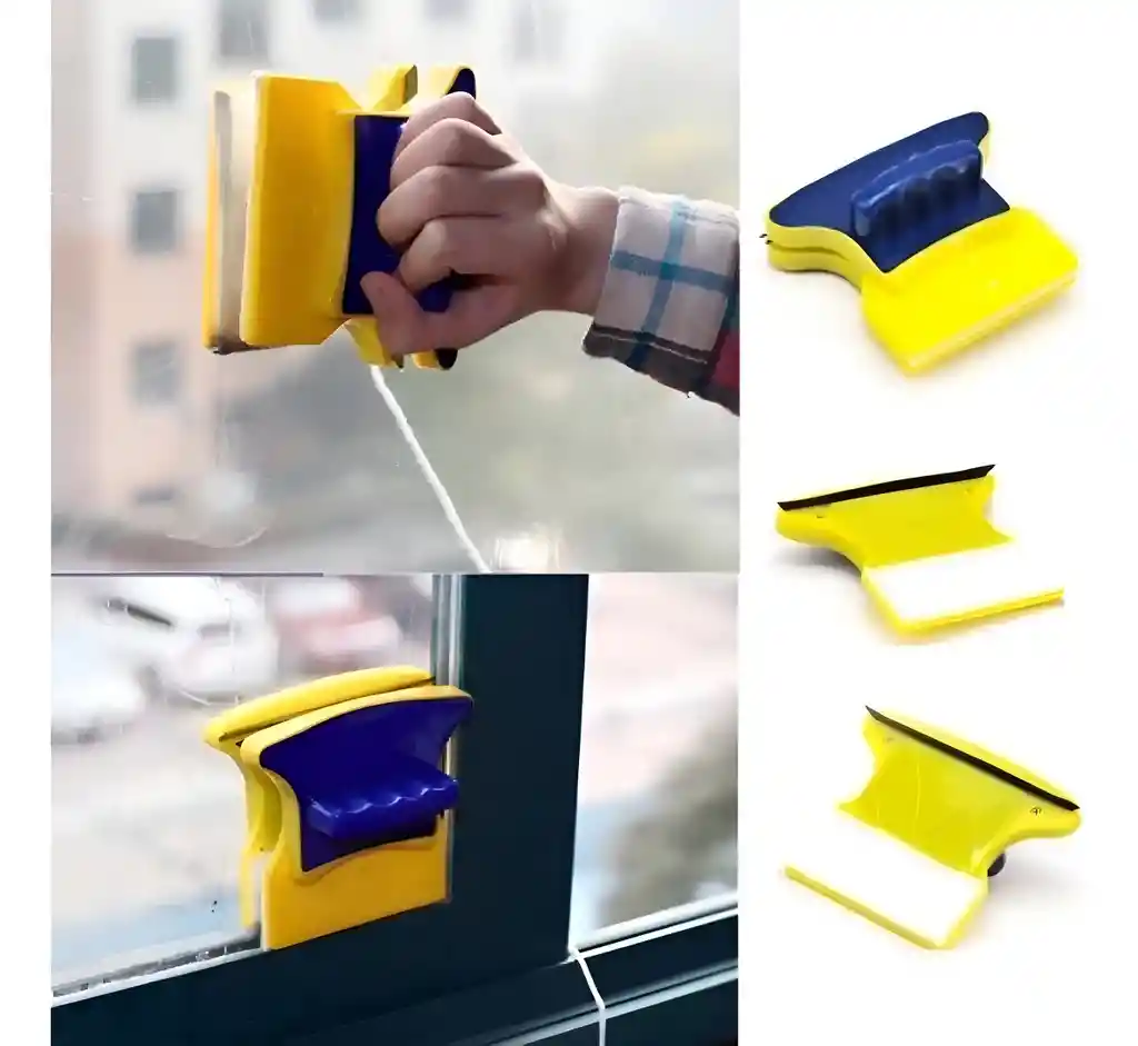Limpiador magnético de doble cara para vidrio. El limpiador de ventanas mágico facilita la limpieza de ventanas altas y de difícil acceso. Desliza sobre el cristal dejando las ventanas secas, sin marcas y brillantes. Incluye cordón de seguridad para prevenir caídas. Requiere solo agua tibia y detergente para una limpieza efectiva. Una manera inteligente de limpiar ventanas, ahorrando tiempo y manteniendo la seguridad. Los imanes internos permiten limpiar ambos lados de la ventana simultáneamente. Diseño de doble cara y versátil para su uso en ventanas, invernaderos, acuarios y espejos. Espesor de vidrio adecuado: hasta 6 mm Dimensiones totales (ancho x alto): Aprox. 4,5 x 4 pulgadas / 11,4 x 10 cm Área de limpieza (L x H): Aprox. 3.6 x 1.3 pulgadas / 9 x 3.3 cm Longitud del cordón: aprox. 50.5 pulgadas