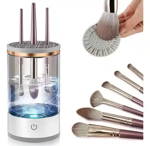 Limpiador eléctrico de brochas de maquillaje: se utiliza con solución de limpieza para limpiar completamente los residuos de cosméticos. PDA libremente los cepillos para ajustar el ángulo para una limpieza profunda sin arruinar la forma y la suavidad de tus cepillos Perfecto para diferentes pinceles: se adapta para limpiar varios cepillos, incluso cepillos cortos de rubor, cepillos de uñas y cepillos de doble cabeza. Deben limpiarse durante 20 segundos. Control con un botón El limpiador automático de brochas de maquillaje es recargable por USB, lo que hace que el proceso de operación sea simple. Puedes apagarlo o encenderlo fácilmente, y es fácil de operar y transportar, lo que lo convierte en un cómodo compañero de viaje. Compacto y portátil: con su diseño elegante y compacto, nuestros cosméticos Brushly son portátiles y estéticamente agradables. Se mezclará sin esfuerzo en tu colección de maquillaje, proporcionando una adición elegante a tu rutina de belleza.