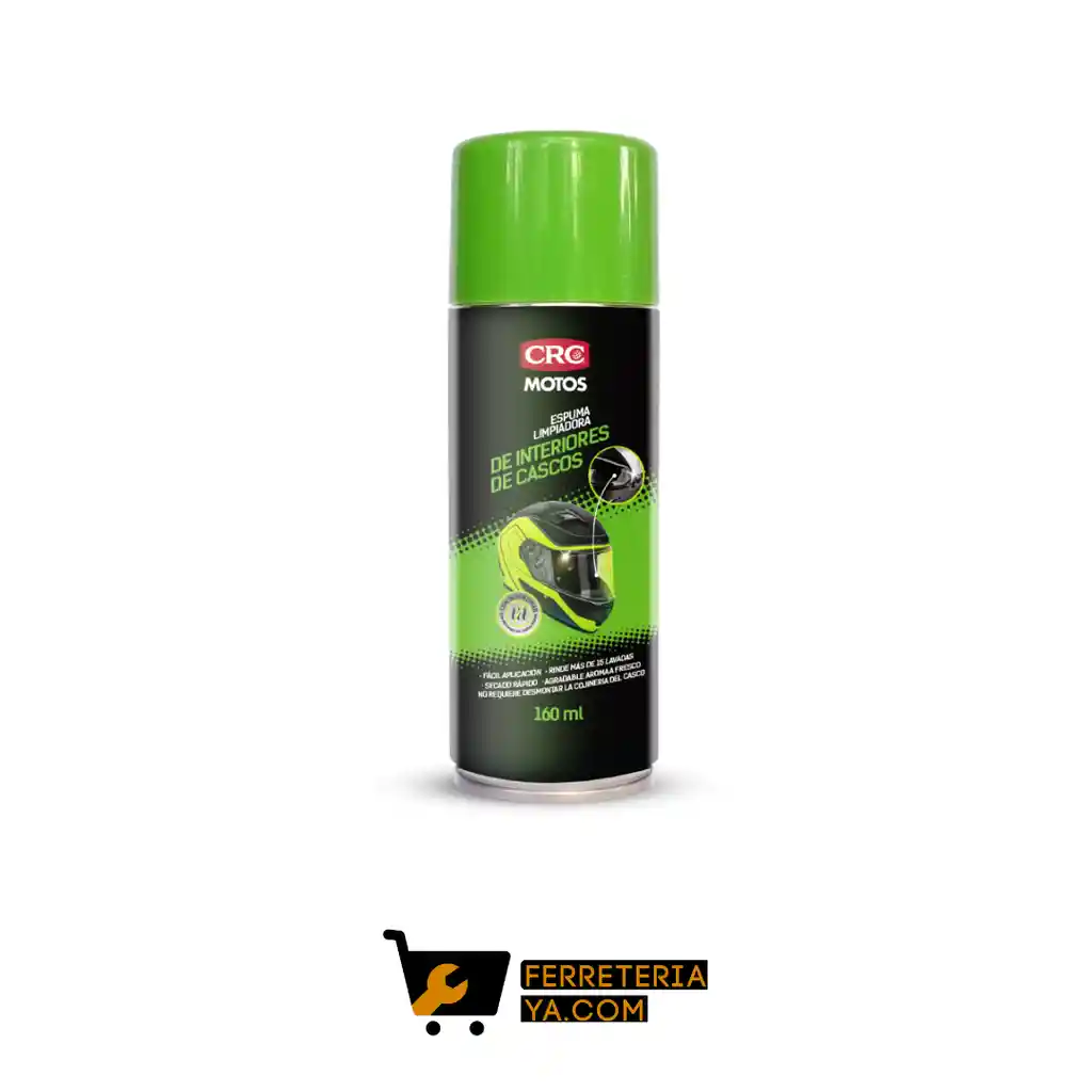 Limpiador De Interior De Cascos Motos En Aerosol 160 Ml Descripción: La espuma limpiadora de interiores de casco CRC es un producto con excelente detergencia que ha sido formulado para lograr una limpieza eficaz de casco. Contiene bioenzimas que eliminan manchas y malos olores.