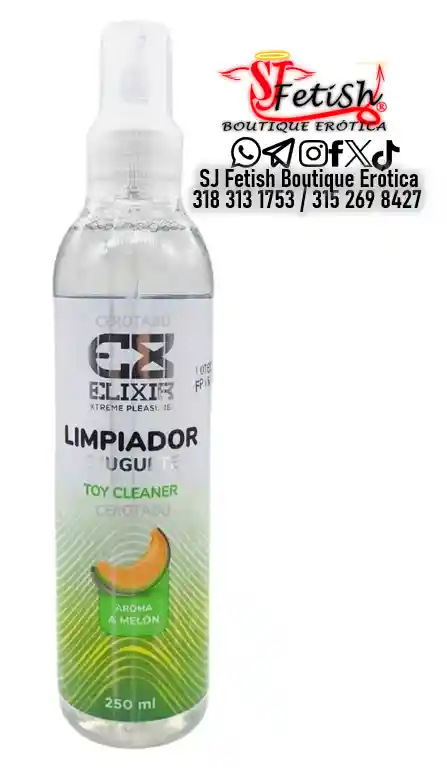 ¡Cuida y prolonga la vida de tus juguetes íntimos con nuestro limpiador de juguetes Elixir con aroma a Melón! diseñado para cuidar y preservar la silicona y otros materiales con que están fabricados tus juguetes íntimos, asegurando que te acompañen por mucho más tiempo. Creado con un pH balanceado y libre de parabenos, garantiza una limpieza suave y eficaz, reduciendo al mínimo la irritabilidad. Disfruta su delicioso aroma a melón que deja en tus juguetes, ¡una experiencia que no querrás perder! La magia está en los detalles. Dale a tus juguetes el cuidado que merecen. Disponible en sj fetish boutique erotica, boutique erótica, boutique erotica armenia, sex shop, sex shop armenia, tienda erotica, tienda erotica armenia, sexshop, sexshop armenia, tienda para adultos, tienda para adultos en armenia, tienda para adultos armenia