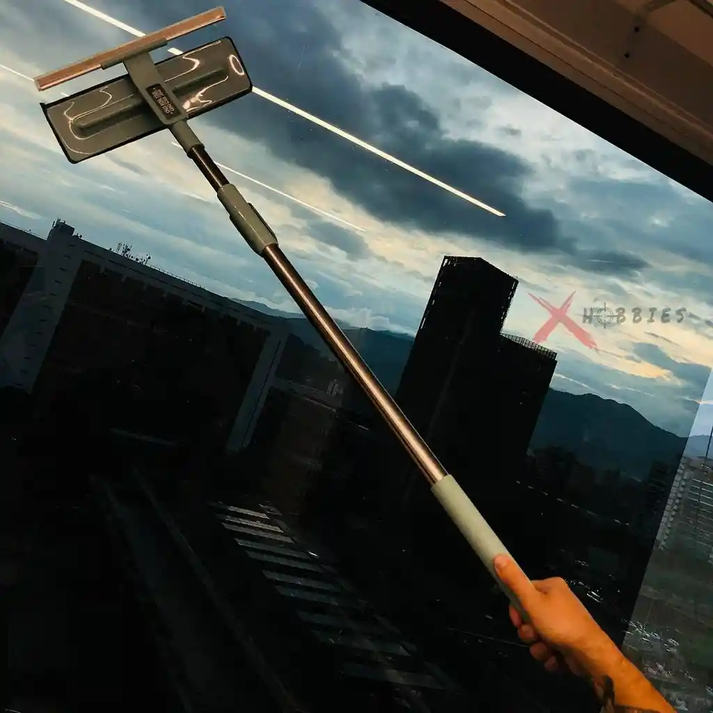 Limpiar las ventanas a veces resulta muy complicado debido a que están muy altas y no llegamos a ciertos puntos. Ahora esto no será un problema, gracias a este maravillo limpiador, que cuenta con un mango de 120cm de largo, perfecto para llegar a las esquinas mas lejanas sin mucho esfuerzo. Por un lado cuenta con un paño absorbente totalmente lavable, con el cual puedes estregar la superficie perfectamente. Y por el otro lado tiene el limpiador que te sirve para quitar el jabón que queda en el vidrio sin necesidad de agua, así no perderás tiempo ni harás un desastre en tu casa. Es giratorio y gracias a su diseño puede hacerlo hasta 360 grados sin ningún problema y con su sistema de bloqueo giratorio podrás llegar a las esquinas más difíciles. Quitar y poner el paño es muy fácil, pues cuenta con un velcro en la base. INCLUYE: 1 Limpiador. 2 (Dos) paños. ESPECIFICACIONES: Material: ABS + aluminio Dimensiones del mando: Longitud mínima 70cm, longitud máxima: 120cm Dimensiones del paño: 9cm x 30cm Color: Azul