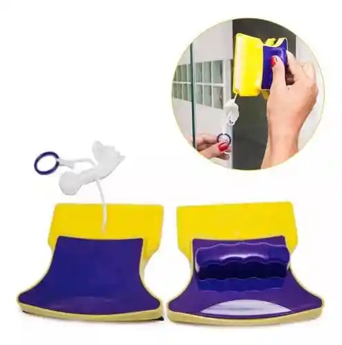 Limpia cristales de manera profesional gracias a sus potentes imanes internos podrás limpiar a la vez las dos caras de la ventana. Dimensiones: Alto 6 cm – Ancho 12 cm – Largo 11 cm Observaciones: La foto de este producto ha sido ambientada, por lo cual no incluye ningún adorno, ni accesorios, ni piezas adicionales ni ningún otro elemento que lo acompañan. •Tipo: Limpiavidrios •Material: Plastico Abs, Iman, Nylon •Color: Amarillo, Azul •Incluye: 4 Paños
