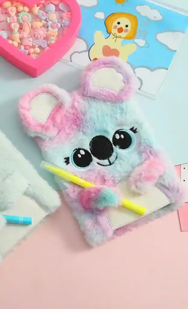 Hermoso y tierno detalle para dama o niñas ,material muy suave al tacto. Lindo cuaderno peludo Koala,unicornio,oso gran variedad de diseños se enviara diseño a disponivilidad. diario de animales, regalo,Bloc de notas estacionario, nuevo. 80 hojas 160 paginas 15x21.5 cm