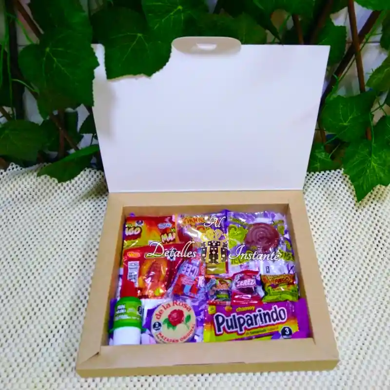 Elotes Vero Pulparindo Mazapan de la Rosa Mango cubierto Mara Chamoy Miguelito Raqueta Tamarindo Miguelito Pelon pelo rico mini Sandia Icee mini cherry sours Goma Go Mara Goma Cereza Mara Boloncha Fuego Mara Tarjeta regalo con mensaje personal impreso Moño decorativo Caja de cartón estampada los colores , sabores y motivos pueden varias de acuerdo a ocasión ejemplo(feliz día), disponibilidad o elección del cliente