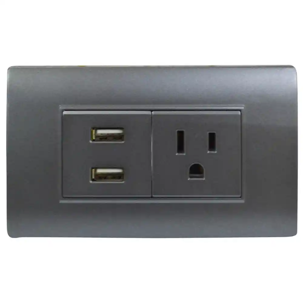 LINEA BK PLUS GRIS INCRUSTAR TOMA SENCILLO + 2 USB (118K-36) (HT20714)