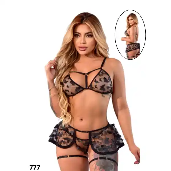 Lingerie Emesis Este conjunto es una invitación a sacar tu lado más atrevido. Con transparencias sugerentes, detalles estratégicos y un diseño que celebra la actitud, está pensado para quienes disfrutan sentirse seguras, poderosas y un poco traviesas. Perfecto para encender el mood, divertirte con tu estilo y demostrar que la confianza también puede ser audaz, sexy y totalmente tuya. Mezcla detalles audaces con un diseño femenino y sofisticado. Sus transparencias y líneas modernas crean un look coqueto, divertido y lleno de carácter. Características Lingerie Emesis Incluye Bralette Panty Falda Liguero 2 Ligueros Cuidados Lavar a mano con agua fría y un detergente suave. Evita el uso de blanqueadores, el secado en máquina y el retorcido, ya que pueden dañar las fibras delicadas. Sécala al aire libre, preferiblemente a la sombra, y guárdala en un lugar limpio y seco para conservar su forma y suavidad. Confidencialidad: Tus pedidos se envían en una caja o sobre totalmente sellado y opaco sin ningún tipo de marcas. Para nosotros es muy importante tu privacidad. Despacho a todo Colombia