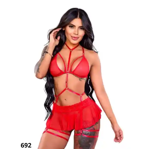 Lingerie Scarlett Este conjunto rojo destaca por su diseño provocador y sofisticado, pensado para quienes desean resaltar su figura con seguridad y elegancia. El top cuenta con tiras estratégicamente ubicadas que realzan el busto y aportan un toque moderno y sensual, mientras que la falda ligera añade movimiento y delicadeza. Confeccionado en materiales suaves al tacto, brinda comodidad sin perder sensualidad. Perfecto para sorprender, elevar la confianza y crear una presencia inolvidable. Características Lingerie Scarlett Incluye Bralette Panty Cubre panty Liguero body Cuidados Lavar a mano con agua fría y un detergente suave. Evita el uso de blanqueadores, el secado en máquina y el retorcido, ya que pueden dañar las fibras delicadas. Sécala al aire libre, preferiblemente a la sombra, y guárdala en un lugar limpio y seco para conservar su forma y suavidad. Confidencialidad: Tus pedidos se envían en una caja o sobre totalmente sellado y opaco sin ningún tipo de marcas. Para nosotros es muy importante tu privacidad. Despacho a todo Colombia