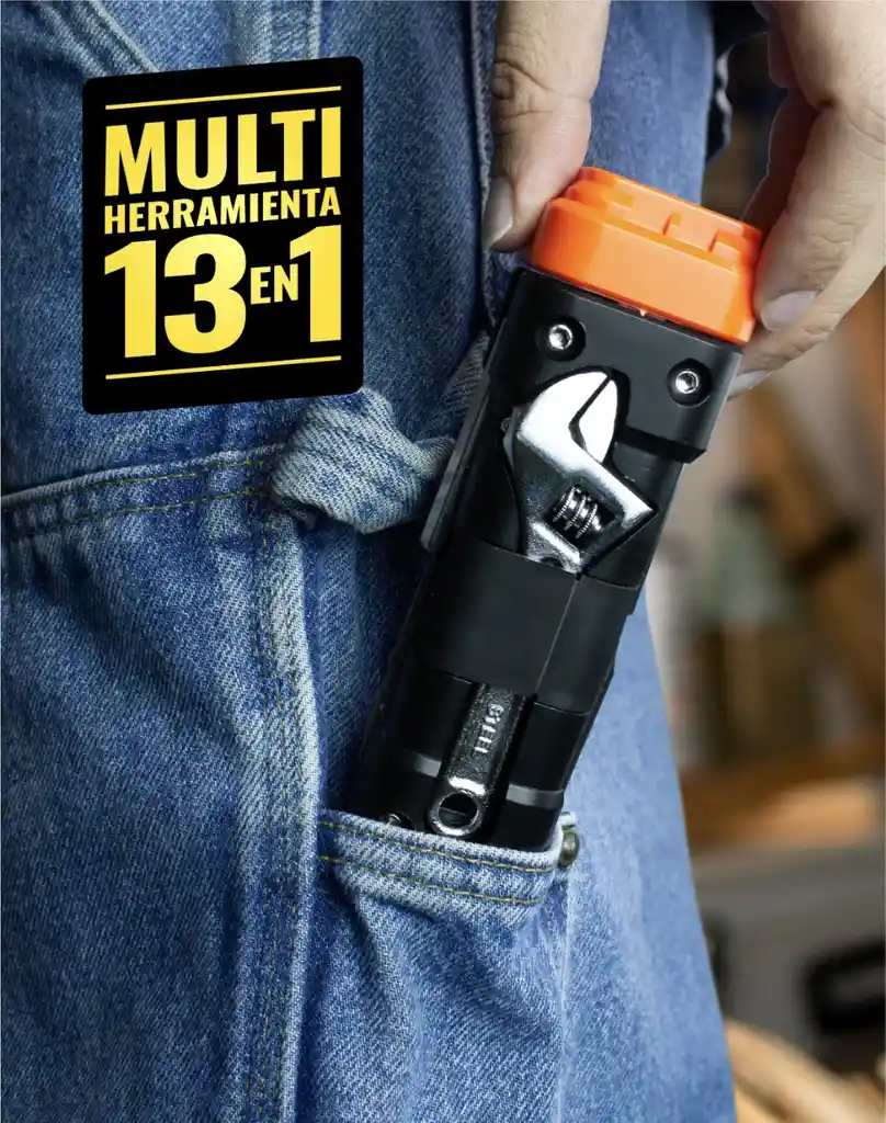 Descubre la Linterna Multifuncional 13 en 1! Prepárate para cualquier aventura con nuestra innovadora linterna multifuncional, una herramienta esencial para los amantes de la naturaleza y los que buscan estar siempre listos. Con 13 funciones en un solo dispositivo, esta linterna combina la potente luz LED con múltiples herramientas que te harán la vida más fácil, ya sea en emergencias, durante un viaje de camping o en las tareas diarias del hogar. Características Principales: 13 Herramientas en 1: Incluye 2 destornilladores Philips, 2 destornilladores de cabeza plana, 3 llaves Allen, 1 llave ajustable, 1 linterna LED, 1 cinta métrica, 1 par de tijeras plegables, 1 cuchillo cortante y 1 abridor de latas. Linterna LED Potente: Proporciona una iluminación brillante y duradera, ideal para cualquier situación. Diseño Portátil y Resistente: Compacta y ligera, se adapta fácilmente a tu mochila o bolso, perfecta para llevar a todas partes. Usos Recomendados: Emergencias: Nunca te quedes a oscuras, ten siempre a mano una herramienta que combine luz y funcionalidad. Camping: Lleva tu linterna multifuncional para todas las tareas que puedan surgir al aire libre. Hogar: Úsala para reparaciones rápidas y tareas diarias. ¡No esperes más para equiparte! Haz tu pedido ahora y lleva la versatilidad y la seguridad a tu vida diaria con la Linterna Multifuncional 13 en 1.