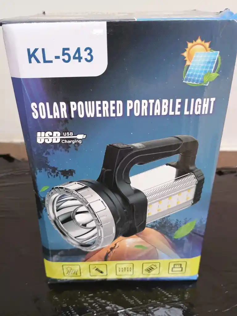 Incluye: * Dos modos de alcance a distancia * Luz de emergencia: blanca frontal y roja lateral * Luces laterales: blanca con dos niveles de intensidad y roja de emergencia * Indicador de porcentaje de carga * Carga mediante panel solar o cable USB