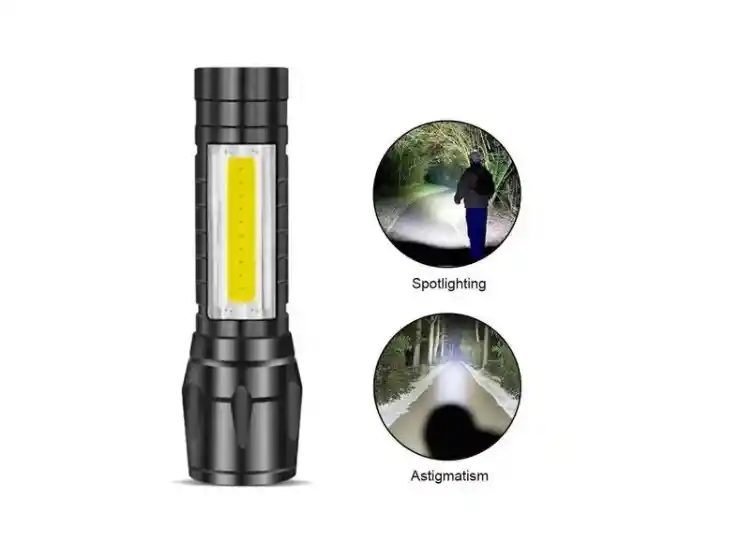 • Material: Aleación de aluminio. • Peso Aprox.: 52 g. • Tamaño Producto: 9.2 x 2.5 x 2 cm / con luz zoom: 10 x 2.5 x 2 cm. • Tipo de bombilla: XPE + COB. • Flujo luminoso: 300 Lúmenes. • Batería recargable de 1200 mAh. • Recargable por medio de USB. • Posee luz por zoom con solo deslizar la parte frontal hacia adelante. • Tiempo de descarga: 40 minutos (uso continuo) • Tres modos de luz: Luz fija, Luz flash, Luz en cuerpo linterna. • El lado de la linterna está diseñado con una luz led para diferentes usos. • Larga distancia y gran área de iluminación. (80 metros aprox.) • Adecuada para caza, ciclismo, escalada, camping y demás actividades al aire libre. Contenido del Paquete • 1 Linterna Led 511 • 1 cable USB para carga. • 1 Estuche en plástico. • 100 % Nueva