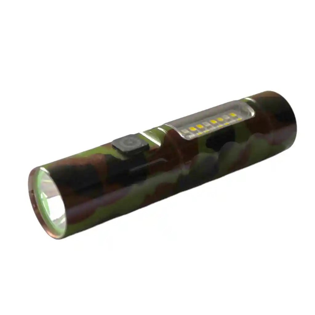 Descubre la herramienta perfecta para tus aventuras y emergencias. Esta linterna recargable LED combina alta potencia y versatilidad en un diseño portátil y resistente. Ideal para actividades al aire libre como camping, senderismo, pesca o simplemente para el hogar. Su diseño compacto y camuflado la hace ideal para quienes buscan funcionalidad y estilo en un solo producto. Además, cuenta con múltiples modos de iluminación para adaptarse a cualquier situación. DETALLES Iluminación LED de Alta Potencia: Proporciona una luz brillante y de largo alcance, ideal para actividades nocturnas. Recargable por USB: Olvídate de las pilas. Incluye un puerto de carga que permite mantener la linterna lista en cualquier momento. Diseño Compacto y Portátil: Fácil de llevar contigo gracias a su tamaño práctico y correa de sujeción incluida. Multifunción: Ofrece diferentes modos de iluminación, incluyendo luz focalizada y luz lateral para máxima versatilidad. Durabilidad y Resistencia: Fabricada con materiales de alta calidad, perfecta para resistir el uso en exteriores. Ideal para Emergencias: Úsala como luz de respaldo en cortes de energía o situaciones de emergencia. Estilo Camuflado: Diseño único que combina funcionalidad y estética. Dimensiones: 3 largo x 3 ancho x 14 alto. **INFORMACION IMPORTANTE **El color de la foto es referencial para que puedas ver los atributos del producto y al mismo tiempo es la opción 1 nuestra de despacho. Pero dejamos la aclaración para que lo tengas presente por si te llegara en otro color.** NOTA : La foto de este producto ha sido ambientada, por lo cual no incluye ningún adorno, ni accesorios, ni piezas adicionales ni ningún otro elemento que lo acompañan. Observaciones De Garantía: 1 Mes **** La garantía de este producto es exclusivamente por defectos de fábrica, no por daños ocasionados por mal uso o por desconocimiento de uso del cliente. La garantía se tramitará bajo las políticas, términos y condiciones establecidos por la empresa.