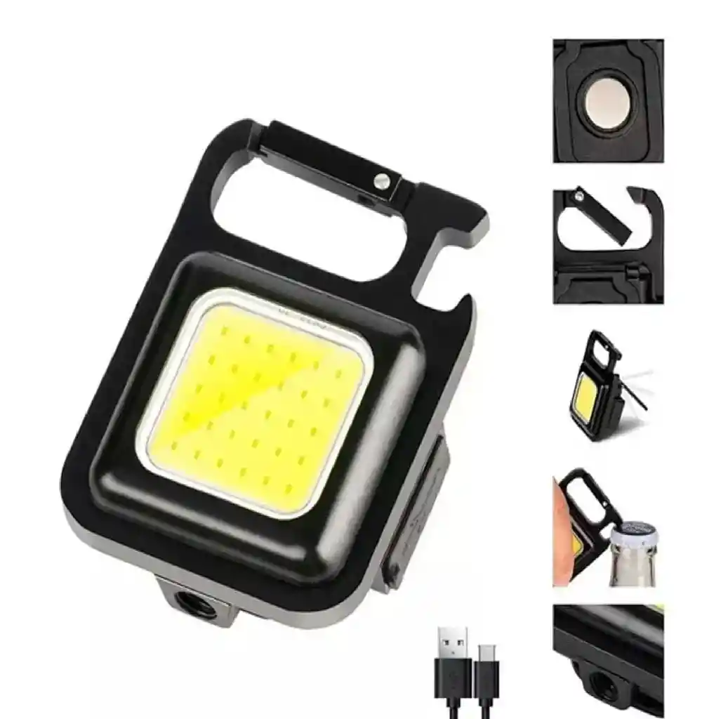 Material: Plástico y metal. Tamaño Aprox. Producto: 6 x 4.5 x 2 cm. Capacidad de batería: 500 mAh. Funcionamiento: USB recargable. Peso: 38 g. La linterna llavero tiene un potente LED para proporcionar 800 lúmenes de iluminación al máximo mientras mantiene el tamaño portátil y el diseño minimalista. Tiene 4 modos de iluminación: COB 60% modo alto, COB 30% modo bajo, modo estroboscópico COB y pulsa el botón de encendido 2-3 segundos para el más brillante. la linterna portátil tiene un mosquetón que se puede fijar fácilmente al llavero o bolsas, es impermeable, también es un buen abridor de botellas. Se puede utilizar para acampar, pasear al perro, buscar cosas, reparar, etc. En el modo más brillante, la linterna puede funcionar durante aproximadamente 1 hora. Alrededor de 2 horas en modo 60% y alrededor de 3.5 horas en modo 30%. La fuerte base magnética y el mango plegable te permiten liberar tus manos mientras trabajas. El diseño magnético permite que la lámpara se fije a cualquier metal, y el mango plegable de 180° permite que la lámpara se coloque en diferentes ángulos o cuelgue en ciertos lugares. Cuando llegue el momento de recargar, simplemente conéctalo a cualquier fuente de alimentación USB. Contenido del paquete: 1 Mini linterna. 1 Cable USB. 100 % Nuevos.