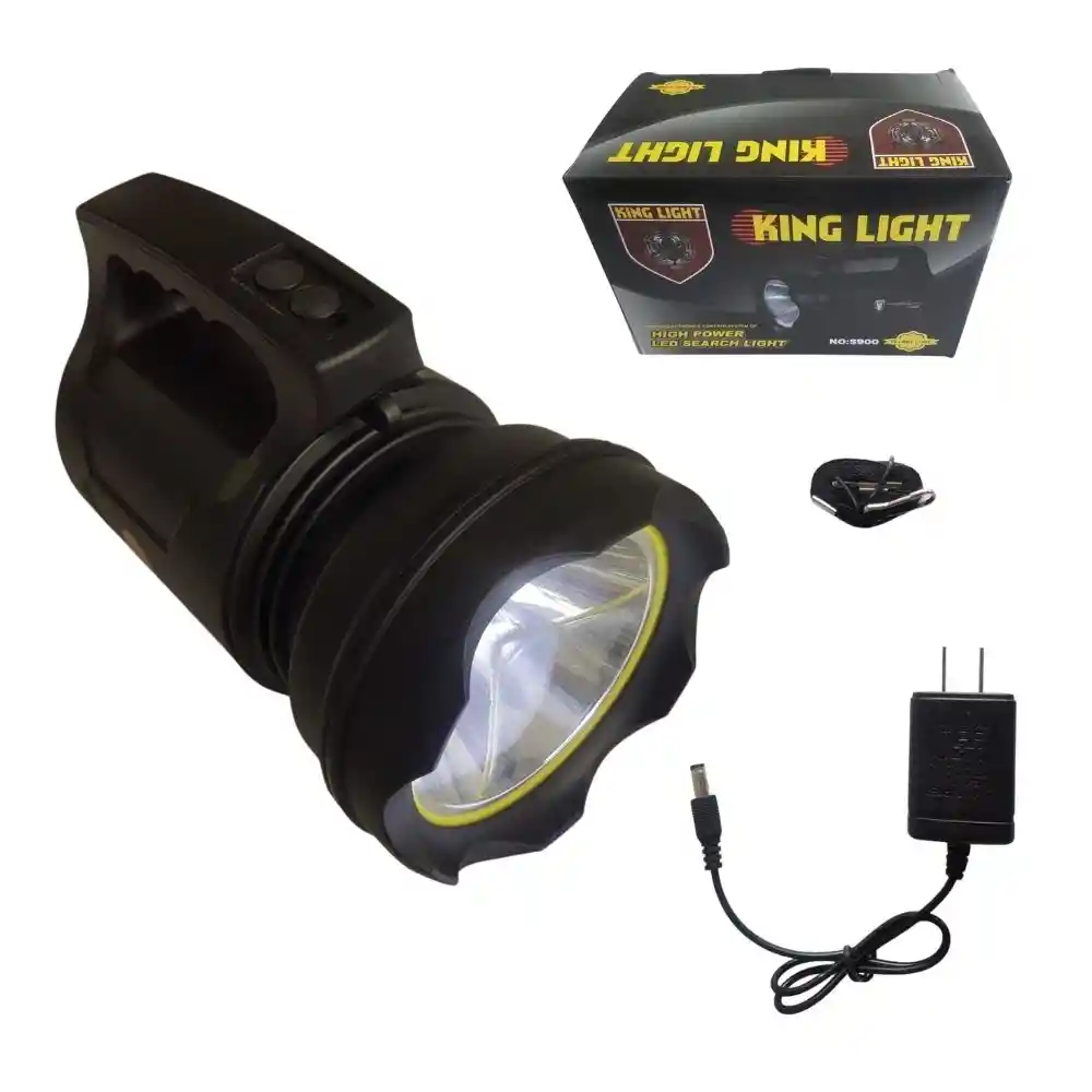Poderosa Linterna Recargable S900, concentración de luz led blanca Trae batería interna recargable. 3 modos de iluminación (Alta, baja y strober). Ideal para su seguridad en carretera, lampara auxiliar del auto, deportes como tiro al blanco, pesca, paseos, camping, caminatas, e infinidad de usos. CARACTERÍSTICAS Luz blanca 3 modos de luz: Alta, baja, strober Batería recargable 2 botones de encendido. Con correa de transporte incluida. Voltaje de entrada nominal: AC110-220V Frecuencia de voltaje: 50 Hz - 60 Hz Salida: CC 5,4 V Temperatura ambiental: -10 ° C + 45 ° C Humedad ambiental: - <90% Tiempo de trabajo: luz baja alrededor de 6 horas, luz máxima alrededor de 10 horas Carga: 8 horas - 10 horas Especificaciones de la batería: 4 V 6500 mAh - 9000 mAh Carga de ciclo Seguro y practico Electricidad duradera Copa óptica de gran profundidad y largo alcance No dirija los ojos de las personas o los animales para evitar la ceguera. CONTENIDO 1 linterna S900 1 cargador de pared 1 correa de transporte