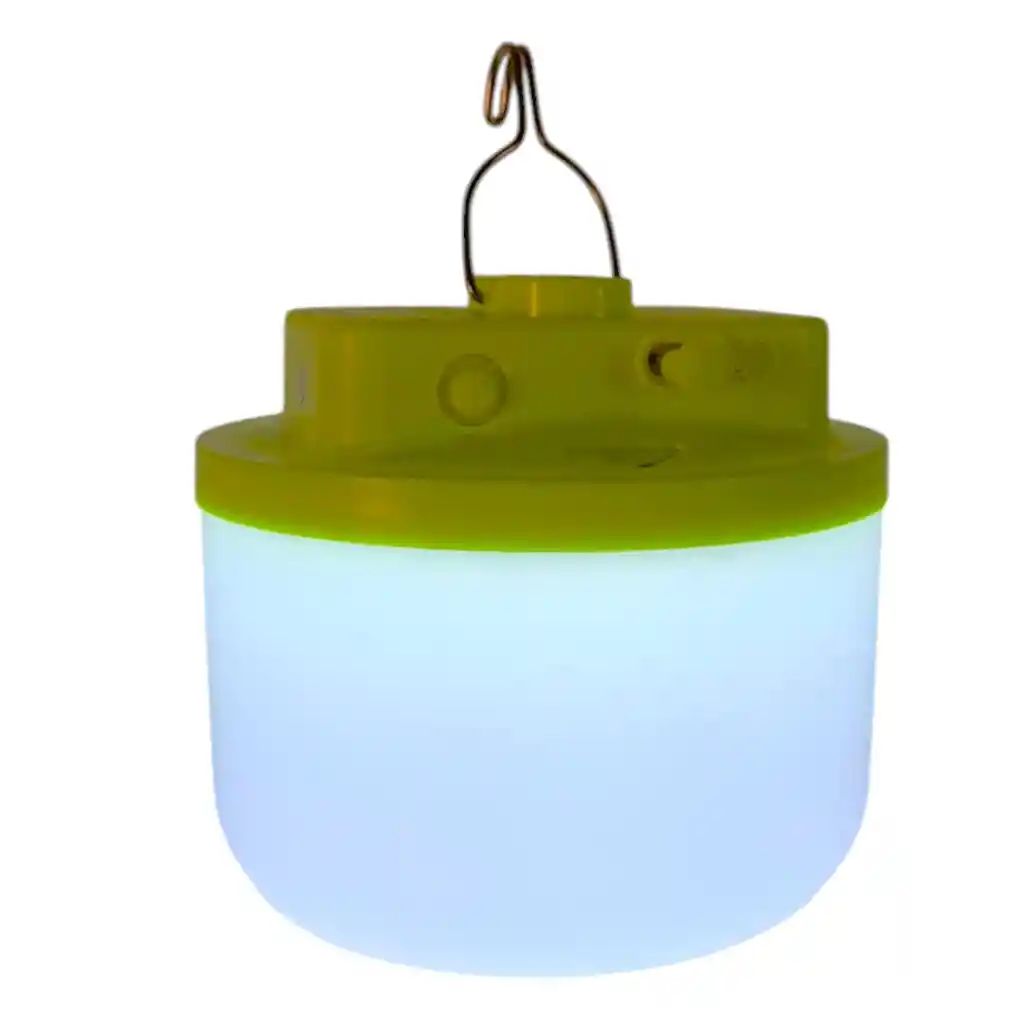 Ilumina cualquier espacio con esta potente lámpara LED recargable, ideal para camping, emergencias, exteriores y el hogar. Su diseño compacto y portátil te permite llevarla a donde necesites, ofreciendo una iluminación eficiente y duradera. Gracias a su resistencia al agua, es perfecta para actividades al aire libre en cualquier clima. DETALLES Bateria Recargable Iluminación LED potente: luz blanca brillante con diferentes modos de intensidad. Resistente al agua: ideal para exteriores, camping, senderismo y situaciones de emergencia. Diseño portátil y colgante: fácil de transportar y colocar en cualquier lugar. Fácil de usar: botón de encendido y ajuste de luz con un solo toque. Dimensiones del producto: 12 cm profundo, 12 cm ancho y 11 cm alto. **INFORMACION IMPORTANTE **El color de la foto es referencial para que puedas ver los atributos del producto y al mismo tiempo es la opción 1 nuestra de despacho. Pero dejamos la aclaración para que lo tengas presente por si te llegara en otro color.** NOTA : La foto de este producto ha sido ambientada, por lo cual no incluye ningún adorno, ni accesorios, ni piezas adicionales ni ningún otro elemento que lo acompañan. Observaciones De Garantía: 1 Mes **** La garantía de este producto es exclusivamente por defectos de fábrica, no por daños ocasionados por mal uso o por desconocimiento de uso del cliente. La garantía se tramitará bajo las políticas, términos y condiciones establecidos por la empresa
