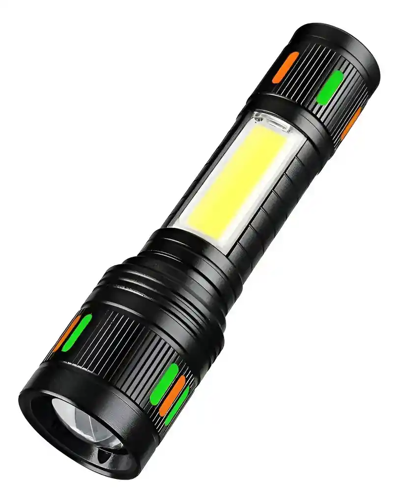 Linterna profesional ideal para actividades al aire libre, trabajo nocturno o emergencias. Diseñada con cuerpo metálico resistente y luz LED de alta potencia que proporciona una iluminación clara y uniforme. Características principales: Luz LED COB de alta intensidad. Zoom ajustable para enfoque cercano o a larga distancia. Múltiples modos de iluminación: alta, baja y estroboscópica. Recargable por cable USB (incluido). Batería de larga duración. Indicadores luminosos de carga. Diseño compacto, antideslizante y resistente a salpicaduras. Incluye estuche rígido protector para transporte y almacenamiento. Usos recomendados: Camping, senderismo, pesca, ciclismo o uso doméstico. Ideal para talleres, seguridad o emergencias. Beneficios: Iluminación potente con bajo consumo de energía. Enfoque ajustable para diferentes necesidades. Alta resistencia y durabilidad en cualquier entorno.