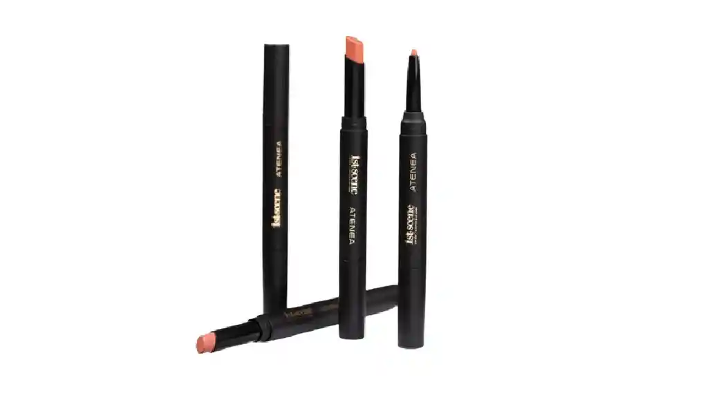 El lip liner + lipstick es cremoso y de larga duración. Viene con acabado mate, lo cual genera un efecto tinta con el paso del tiempo durante el día.
