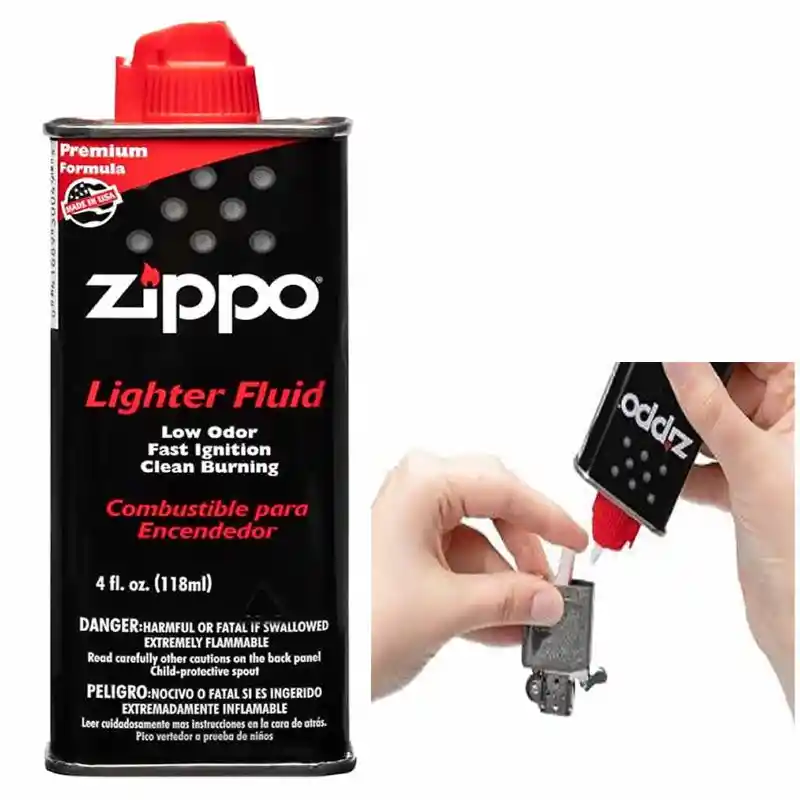 ¡Potencia tus momentos con estilo y confiabilidad gracias al Combustible Para Encendedor Zippo de (125 ml)! Este producto legítimo, fabricado en los Estados Unidos por la prestigiosa marca Zippo, es la elección perfecta para mantener tus encendedores en óptimo funcionamiento. Con una generosa capacidad de 125 ml, este combustible garantiza una larga duración y un rendimiento excepcional para tus encendedores Zippo.
