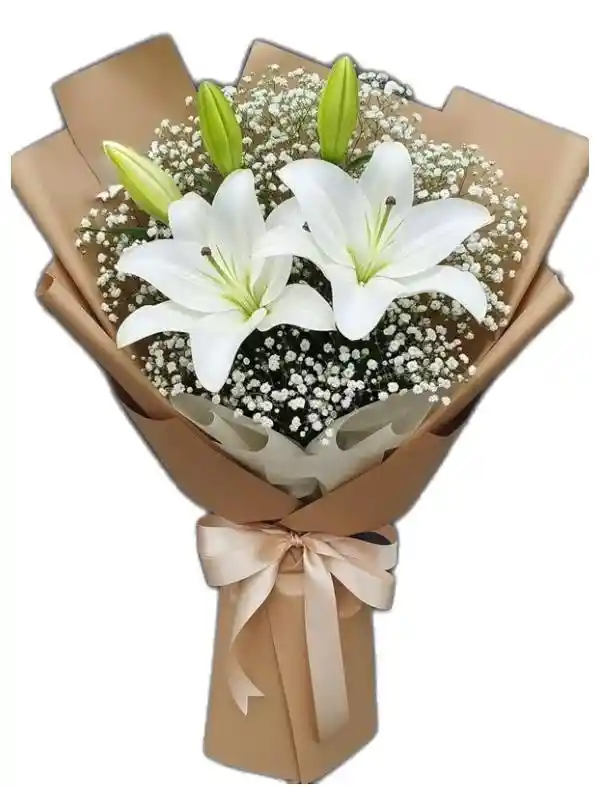 Bouquet floral con 3 tallos de lirios blancos y perla envuelto en papel kraft