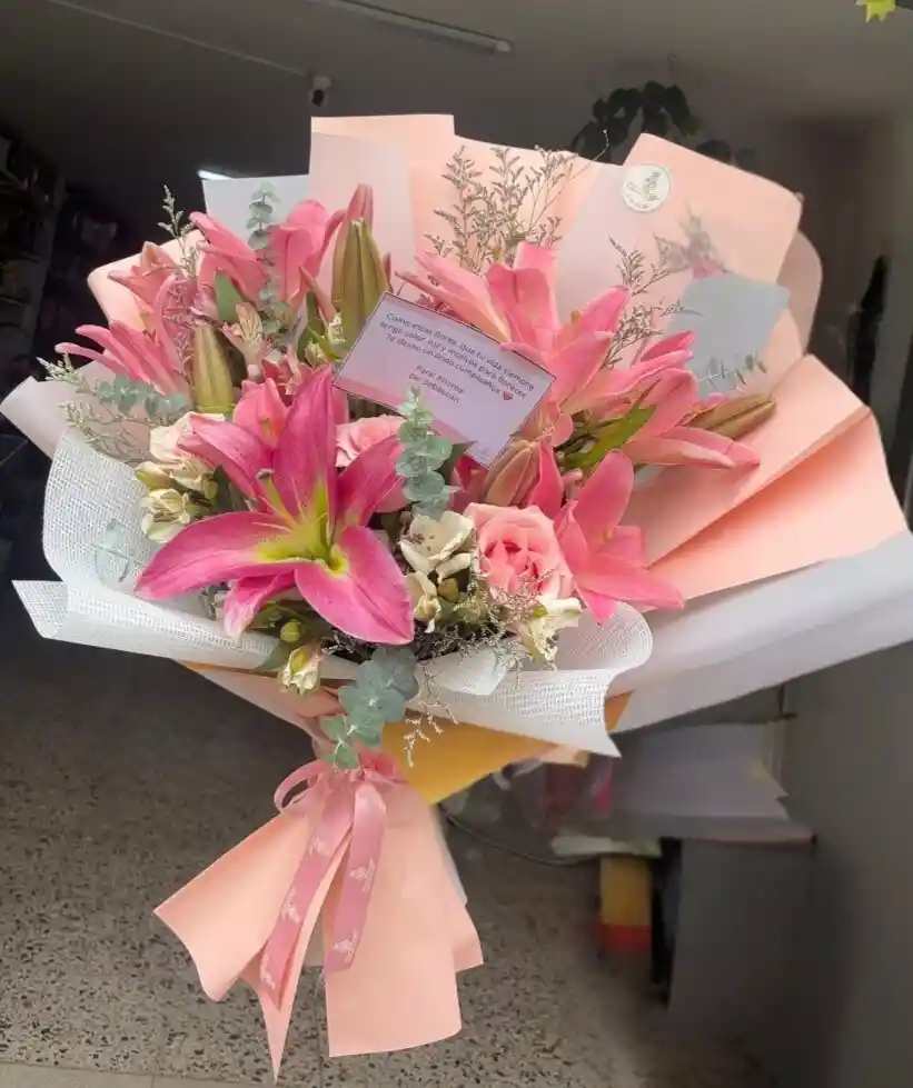 BOUQUET DE LIRIOS, EUCALIPTO Y ASTROMELIAS
