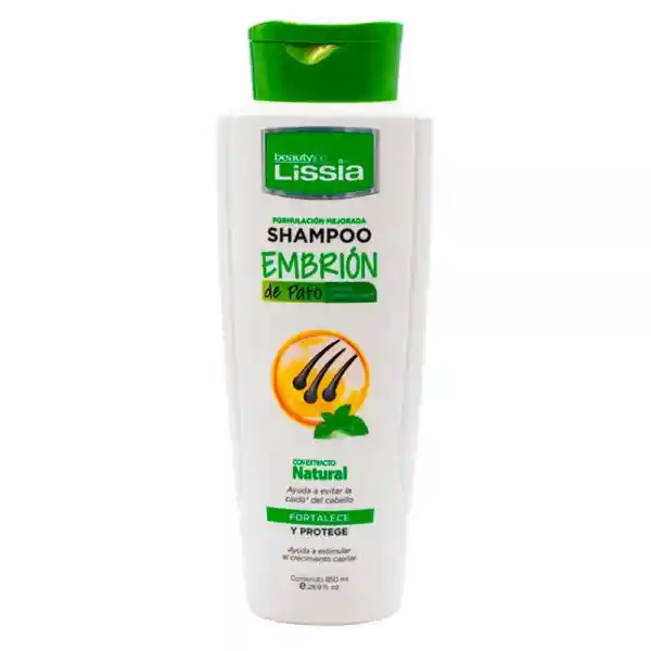 El Shampoo Lissia Embrión de Pato es un producto diseñado para fortalecer, proteger y reparar el daño extremo del cabello gracias a su alto contenido de embrión de pato. Este shampoo combina ingredientes naturales como el embrión de pato, aceite de argán, colágeno y queratina, lo que ayuda a nutrir y reparar el cabello desde la raíz hasta las puntas. Además, combate el frizz, mejora la manejabilidad y proporciona un acabado liso y brillante. También estimula el crecimiento del cabello y ayuda a prevenir la caída, logrando un cabello y cuero cabelludo más saludables con el uso frecuente.