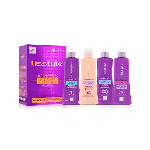 LISSTYLE es un TRATAMIENTO ALISADOR PROGRESIVO de primera generación SIN FORMOL, desarrollado a base de un novedoso COMPLEJO DE AMINOACIDOS KERATINA y CARBOCISTEINA, conocida por mantener la producción del colágeno. LISSTYLE actúa en la superficie de la cutícula capilar ELIMINANDO EL FRIZZ Y EL VOLUMEN, permitiendo que el cabello continúe recibiendo todos los nutrientes, manteniendo la hidratación, el brillo, la vitalidad y reparando la estructura capilar de los diferentes daños inclusive los ocasionados por otros procesos químicos (Alisados, decoloraciones, tintes, etc.) LISSTYLE deja el cabello con movimiento de aspecto natural, suave, COMPLETAMENTE LISO y puede ser utilizado en cabellos tinturados, extremadamente dañados y con exceso de volumen.