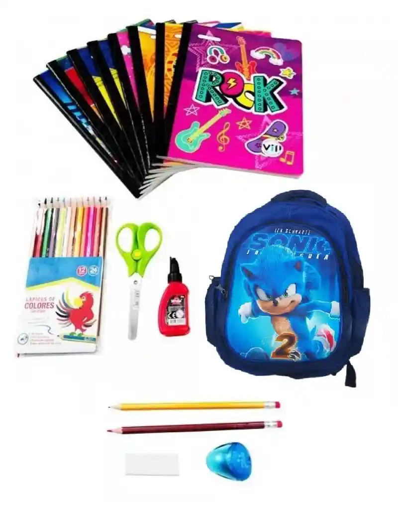 Lista De Útiles Kit Escolar Para Niños Con Maleta CARACTERISTICAS: * Kit Escolar por 20 Piezas para el regreso al colegio. * Productos de excelente calidad y al mejor precio. * Para Niños y Niñas con diseños modernos. * Incluye: - 8 cuadernos cosidos grandes cuadriculados diseño Unisex - 1 regla - 2 borradores de nata - 1 tajalápiz - 2 lápices rojo - 2 lápices negro - 1 caja de colores x 12 - 1 tijeras punta roma - 1 Pegante. - 1 Maleta Grande en 3D De lujo. DESCRIPCION: - Pensando en la comodidad y la seguridad de las familias, hemos diseñado de una manera practica y recursiva una lista escolar autentica y precisa para esta temporada de ingreso a clases, nuestros productos se caracterizan por ser de alta calidad. - Cuenta con cuadernos cocidos, bonitos y modernos diseños para niñas y niños, útiles básicos como borradores, tajalápiz, colores, marcadores, block, tijeras, pegante, carpeta, lápices y una hermosa maleta en 3d de lujo.