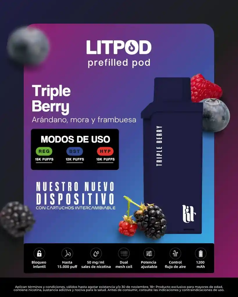 LIT POD (SOLO CARTUCHO, NO INCLUYE BATERIA) PROHIBIDA SU VENTA A MENORES DE EDAD.