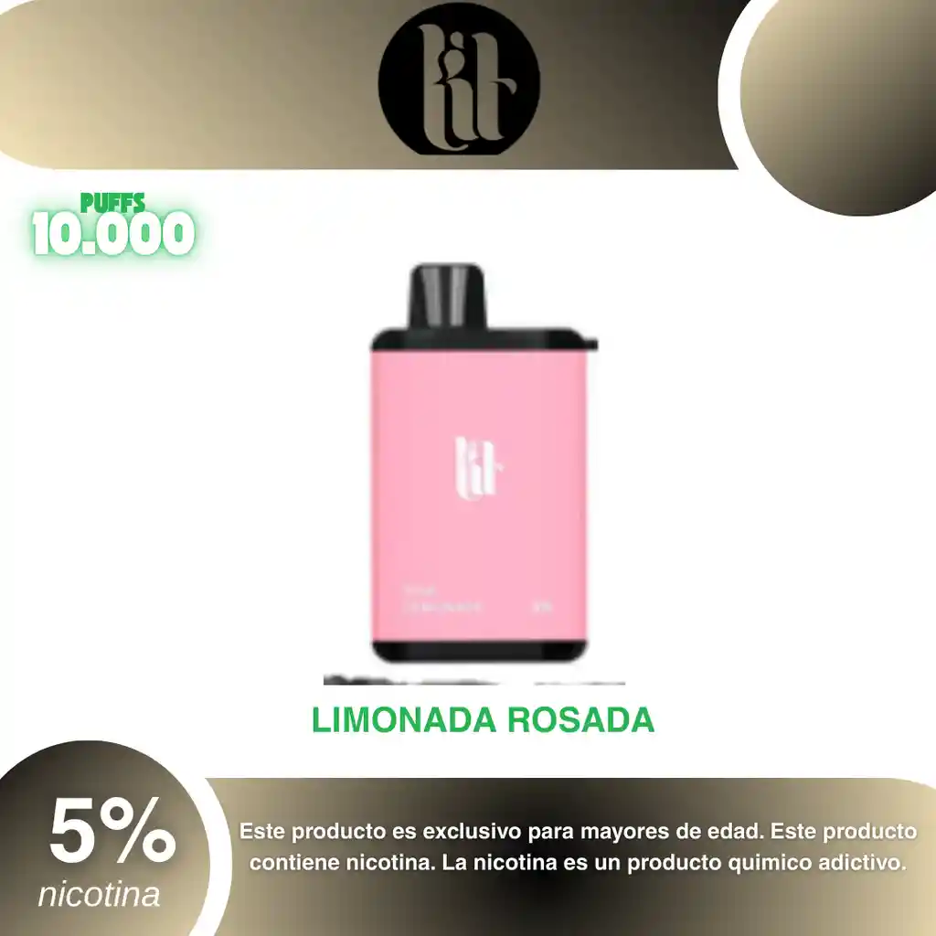 Lit Vape 10.000 Puffs, Sabor Limonada Rosada 5% PROHIBIDA LA VENTA A MENORES DE EDAD. ADVERTENCIA: ESTE PRODUCTO CONTIENE NICOTINA, LA NICOTINA ES UNA SUSTANCIA QUIMICA ADICTIVA Y NOCIVA PARA LA SALUD. Los líquidos para vapeo contienen: propilenglicol USP, glicerina USP, sabor artificial y nicotina. Este producto puede contener nicotina, una sustancia altamente adictiva que puede generar dependencia, posibles afectaciones arteriales, cardiacas, pulmonares y otras aun no identificadas. No se recomienda su uso a mujeres en embarazo, puede generar lesiones al feto. Mantener alejado de niños y mascotas. No ingerir, puede generar irritación y/o intoxicación. Por favor antes de consumir consulte a su médico posibles afectaciones o sensibilidad a alguno de sus componentes. Los componentes de este producto pueden aumentar la sensación de ansiedad En caso de notar alguna reacción adversa por favor suspenda su uso de manera inmediata. Siga las instrucciones en el envase. No alterar sus componentes. Adquiera sus productos en sitios de confianza No use productos piratas, alterados, o en los cuales no pueda comprobar su buena procedencia, Verifique la reputación del fabricante y distribuidor antes de adquirir cualquier producto Si no es usuario fumador o vapeador no se recomienda su uso bajo ninguna circunstancia Al usar este producto usted es consciente que este producto puede generar afectaciones a su salud, incluyendo aquellas que a la fecha de la compra no se han identificado y que pueden aparecer a largo plazo.
