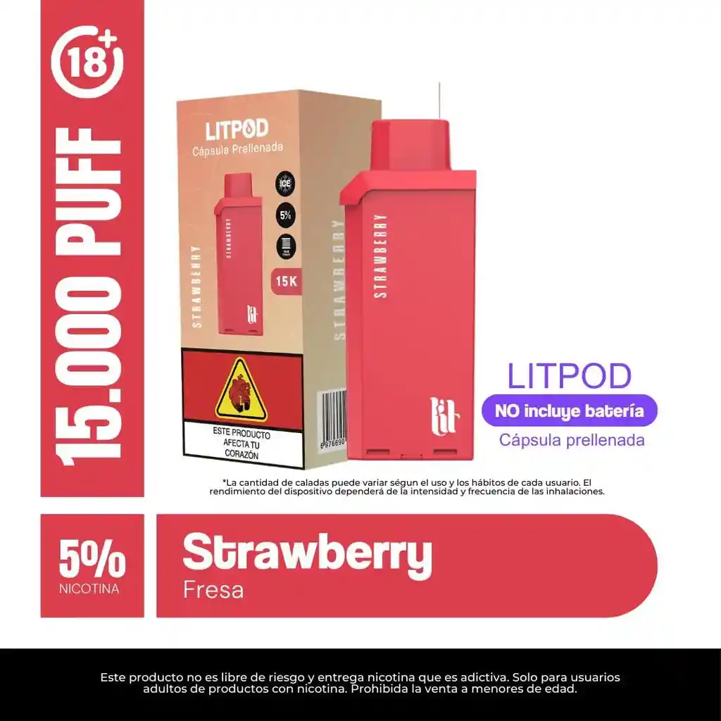 El LITPOD es un pod prellenado de líquido con 5% de nicotina, diseñado para ofrecer una experiencia de vapeo intensa y prolongada. Con una duración de hasta 15,000 puffs, este pod se convierte en la elección perfecta para quienes buscan comodidad y sabor en un solo producto. Hasta 15,000 Puffs por pod.