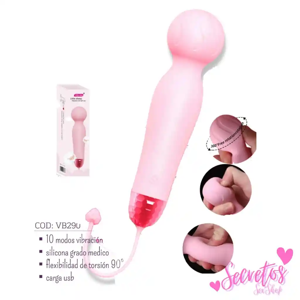 10 modos de vibracion, silicona grado medico, flexibilidad de torsion 90 grados, carga usb y resistente al agua