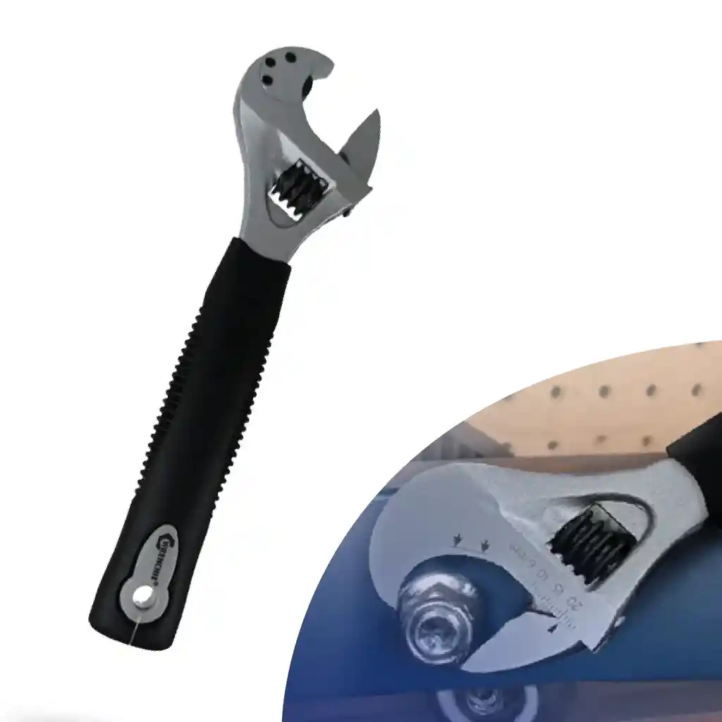 ¡La única llave que necesitas! Herramienta con trinquete automático que se ajusta a tuercas de 6 mm a 24 mm. Su diseño de acero inoxidable y mango ergonómico permite apretar o aflojar con precisión sin cambiar de llave.
